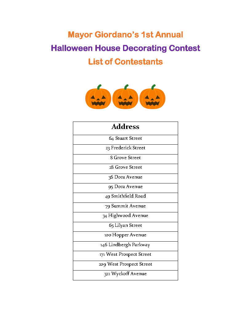 Click Here for a list of homes participating in the Mayor's 1st Annual Halloween House Decorating Contest and see which ones give you a fright - or a delight!