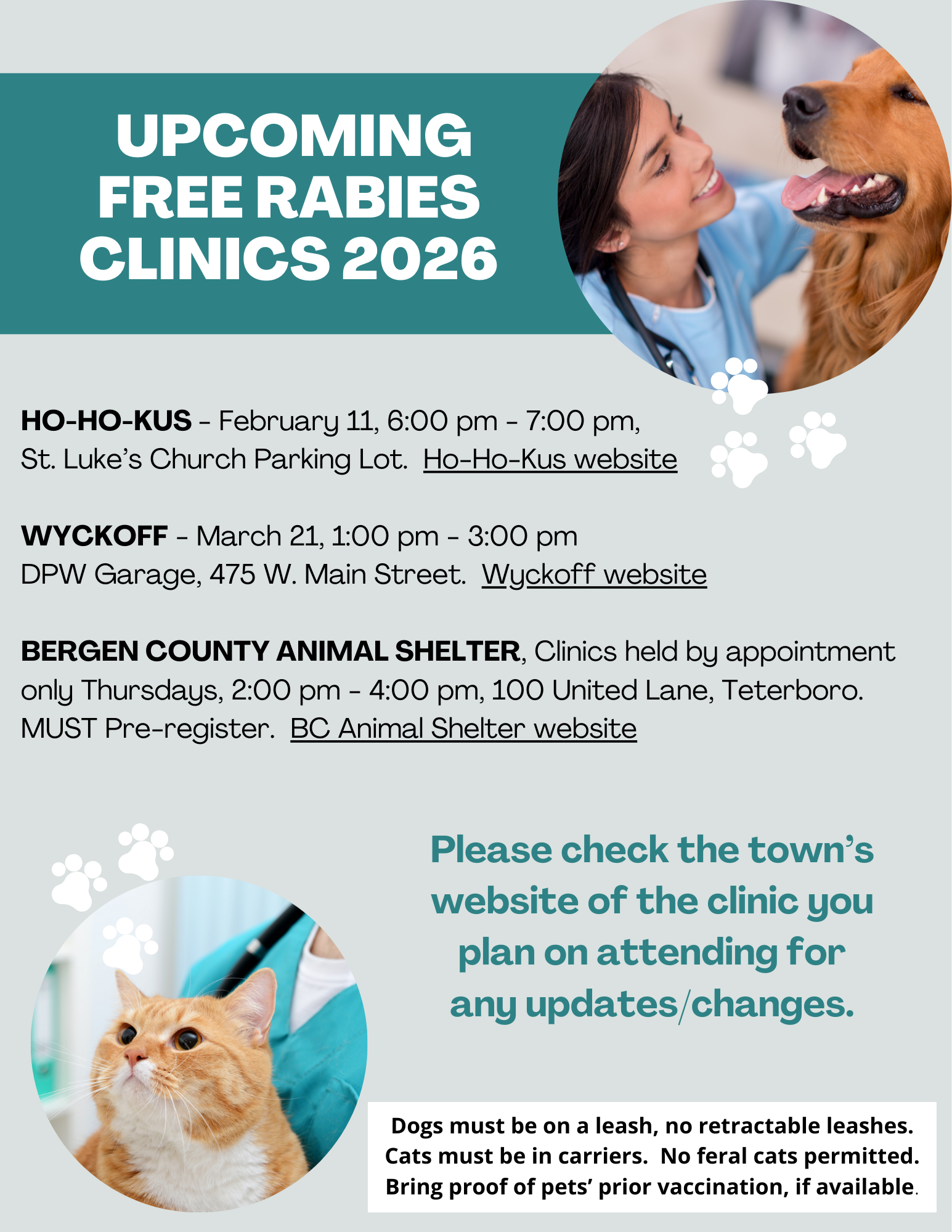 FREE RABIES CLINIC, WINTER 2026 - Please see flyer for details on FREE Rabies Clinics in our area this winter.