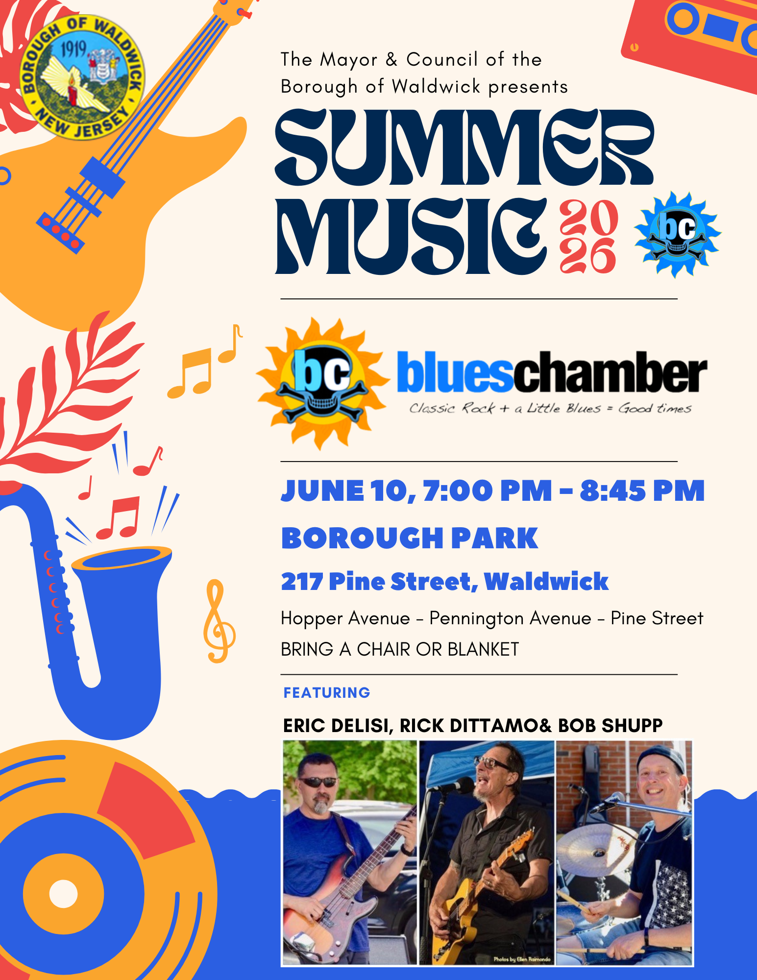 Join us for an evening of classic rock, a touch of blues, and great vibes with Blues Chamber featuring Eric Delisi, Rick Dittamo, and Bob Shupp.