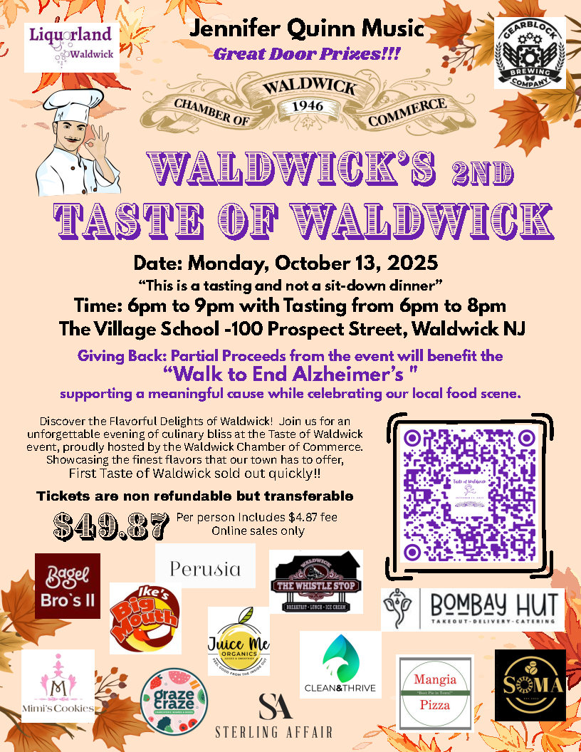 Presented by the Waldwick Chamber of Commerce to take place on Monday, October 13, 2025, from 6:00 pm - 9:00 pm at the Village School located at 100 West Prospect Street in Waldwick.